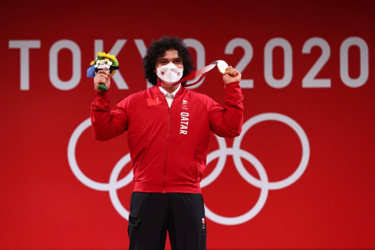 أول ميدالية ذهبية لقطر في تاريخ مشاركاتها الأولمبية ويسجل رقما قياسيا
