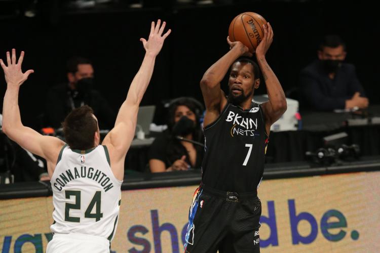 وضع النجم كيفن دورانت فريقه بروكلين نتس على مشارف الدور نصف النهائي لدوري كرة السلة الأميركي للمحترفين (نهائي المنطقة الشرقية) عندما ساهم في فوزه على ضيفه ميلووكي باكس 114-108 في المباراة الخامسة من سلسلة الدور ربع النهائي.
