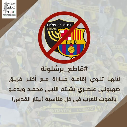 وتابع “نودّ إعلامكم أن نادي برشلونة لم يعلن عن الأجندة الرياضية لما قبل الموسم الحالي من خلال قنواته الرسمية، لذلك لم يتواصل الناس ولم يؤكد إقامة أي مباراة ودّيه لفريق كرة القدم الأول في القدس”، في إشارة لفريق “بيتار”.