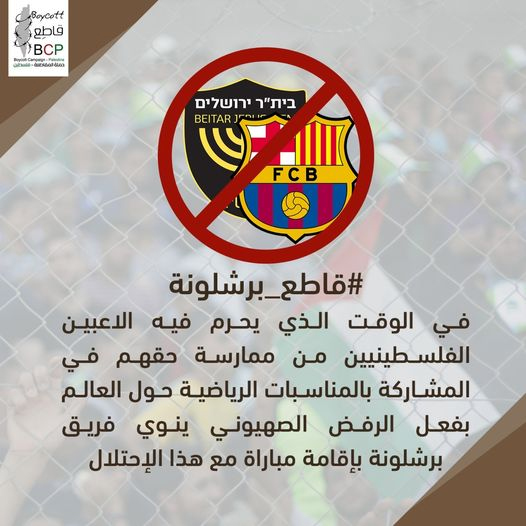 وأوضح المركز في رسالته أن القرار يسهم في شرعنة الاستيطان، من خلال إقامة أنشطة نادي “بيتار القدس” الرياضية داخل المستوطنات، وهو ما ينذر بإدراج نادي برشلونة العالمي ضمن قائمة المؤسسات التي تنتهك اتفاقيات حقوق الإنسان.