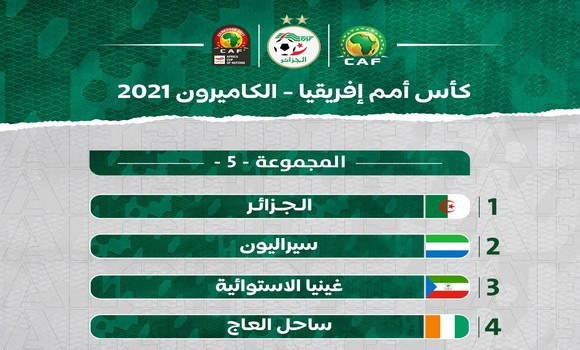 كأس أمم إفريقيا-2021 – المجموعة الخامسة: الجزائر في مجموعة متوازنة وفي المتناول كأس أمم إفريقيا-2021 – المجموعة الخامسة: الجزائر في مجموعة متوازنة وفي المتناول وقع المنتخب الوطني لكرة القدم في مجموعة متوازنة تضم سيراليون، غينيا الإستوائية ...المزيد...